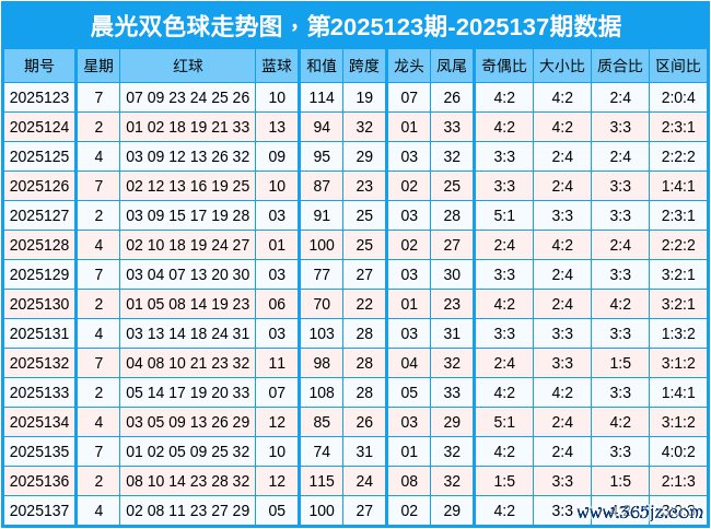 红球奇偶比分析:上期奇偶比开出4:2,近5期奇偶比为4:2、1:5、4:2、5:1、4:2;近15期奇偶比为51:39,奇数号码走势较热。本期预测红球奇数号码热开,红球奇偶比参考4:2,参考奇数号码:01、11、29、31。