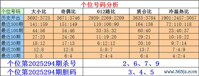 近期个位质数号码走冷,当今轮空1期,本期防质数号码回补;近期该位大号走势较冷,当今轮空2期,本期要点体恤大号解冻。个位杀号:2679,胆码体恤:345。