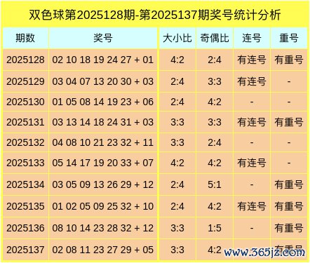 连号分析:上期红球未开出连号,最近10期中有5期开出连号,走势较平。本期展望出现连号3枚:25,26,27。