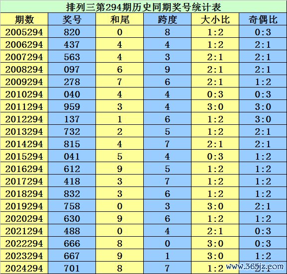 从2004年于今摆设三已开出7417期奖号了,本期为摆设三2025年第294期开奖,历史同时已出现20次奖号:
